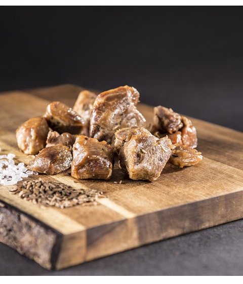 Schweineschulter (30%), Sauerkraut (34%), Kartoffelknödel (28%) (Kartoffeln, Weizenmehl, Grieß, Eier, Salz), Sonnenblumenöl, Zwiebeln, Reismehl, Maismehl, Zucker, Knoblauch, Essig, Salz, Kümmel, schwarzer Pfeffer.